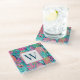 Preppy Pink Teal Navy Blue Pineapple Monogram Glass Coaster