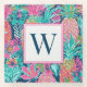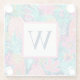 These tropical inspired monogrammed glass coasters feature a preppy pattern of pineapples in shades of pink, teal and navy blue. Personalise the monogram with your choice of initial.