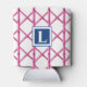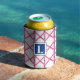 Preppy Pink Trellis Bamboo Pattern Monogram Can Cooler