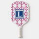 This monogram pink bamboo trellis pickleball paddle is stylish for the pickleball court. Personalise with a letter. This pink trellis bamboo pattern can be found on more items in my shop, PageCreativeDesigns.