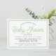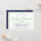 A modern preppy typographic design featuring the phrase 'Baby Shower' in a modern cursive script script. This invitation is in mint and navy, with a polka dot pattern on the reverse side. This design works for a boy or twins baby shower. It can be fully personalised with your details.