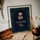 A charming baby shower table sign featuring classic green and navy plaid with a cuddly teddy bear. A simple, timeless detail for an elegant celebration.