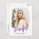 Preppy Purple Script Photo Graduation Thank You Postcard
