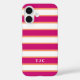 Preppy Raspberry Pink Stripe Monogram Case-Mate iPhone Case