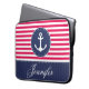 Preppy Red Navy Nautical Anchor Custom Name Laptop Sleeve