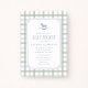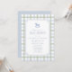 This preppy baby shower invitation is ideal for honoring a mom-to-be who loves classic nursery decor, traditional baby style, and storybook-inspired details. The soft blue tones make it especially suited for a baby boy shower, while the timeless plaid pattern adds a charming, upscale feel. A beautiful choice for a refined, memorable baby shower with a touch of vintage nursery elegance.
