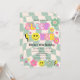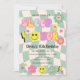 Bring on the good vibes with this new preppy sage green happy face sleep over birthday invitation.