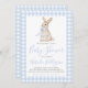Preppy Southern Blue Gingham Bunny Baby Shower Invitation