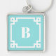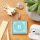 Add a touch of elegance to your keys with this customizable keychain featuring a bold white Greek key border on a vibrant aqua blue background. Personalize it with your monogram for a unique, one-of-a-kind accessory that is both functional and stylish. This keychain makes a great gift for friends, family, or anyone who loves personalized items. Other background colors are also available to match your personal style.