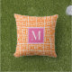 Preppy Square Lattice Monogram Hot Pink & Orange Cushion