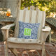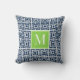 Preppy Square Lattice Monogram – Navy & Lime Cushion