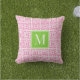 Preppy Square Lattice Monogram – Pink & Lime Cushion