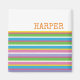 Striped Pattern in bright colors of pink blue yellow green white with custom NAME in orange. Easy to personalize text, text color, font. Great for ANY Person, Family, Home or Office Decor, Baby Shower, Teens birthday, Dorm Fridge, Grandparent Artwork, or ANY event. Modern, Colorful, Preppy. A Timeless Keepsake. Mix and match entire Stripes Collection by TMCdesigns.