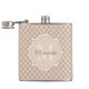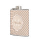 Preppy Tan Quatrefoil Mongogram With Name Hip Flask