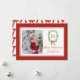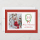 Preppy Watercolor Monogram Wreath Holiday Card, custom photo Christmas card editable text.