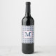 Preppy White Blue Octagon Geometric Monogram Wine Label