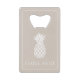 This cute personalized bottle opener features classic white pineapples on a background of soft neutral khaki beige. Personalize with your choice of name and special text the front and back. Great for personalized party favors and gift tags.