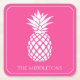 This cute personalised square paper coaster features a classic white pineapple on a background of bright girly pink. Personalise with your choice of name or special text for your next party or every day.