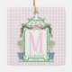 Preppy Wreath with Pink Gingham Bow Ceramic Ornament