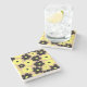 Preppy Yellow Black Hippie Flower Pattern Stone Coaster