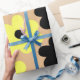 Preppy Yellow Black Hippie Flower Pattern Wrapping Paper