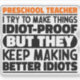 Funny Preschool Teacher Sayings "Preschool Teacher I Try To Make Things Idiot Proof But They Keep Making Better Idiots". Grab this Funny Preschool Teacher design as a funny gifts for an awesome mum, dad or friend.