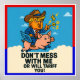 A cowboy-style president riding a flying pig and blasting tariffs at everyone.