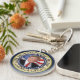 Elegant and stylish round seal design with a photo of President Donald Trump, smiling with a border of stars. Text around the perimeter reads President Donald J. Trump, Keep America Great! with the year 2020. Patriotic American flag in the background, this product makes an ideal Christmas gift for a Trump supporter husband, boyfriend, dad, wife, or anyone! Celebrate inauguration or re-election campaign with ths beautiful keepsake memorobilia collectable collectors gift.