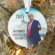 President Donald Trump gives a thumbs up as he walks in front of a Naval Ship in 2020. Elegant photo picture keepsake Christmas ornament for 2023 and beyond.