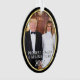 Beautiful image of President Trump with his wife, this couple. President Donald J. Trump and First Lady Melania Trump at the White house during the swearing in of Supreme Court Justice Amy Coney Barrett in October 2020, the perfect gift for the Trump supporter as a nice decoration and expression of pro-America views and politics. Elegant holiday Christmas ornament with oval shape and black and gold accent.