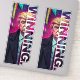 This image features a vibrant, stylised portrait of President Trump set against a colourful, neon-lit urban background. The subject is dressed in a dark coat and tie, exuding a sense of modern sophistication. The bold, dynamic colours and the partial text "WINNING" add an energetic and contemporary feel to the artwork, making it visually striking and engaging.