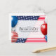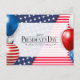 This vibrant postcard is a patriotic salute to President's Day, featuring a dynamic design of stars and stripes in the red, white, and blue of the American flag. The front of the postcard is adorned with the bold statement "HAPPY PRESIDENT'S DAY" centred at the top, with a subtitle "UNITED STATES OF AMERICA" just below, both set against a backdrop of star-spangled patterns and horizontal stripes. Flanking the celebratory message are two balloons, one in blue and one in red, giving the postcard a festive feel. This design captures the spirit of the holiday, making it a perfect choice for sending your President's Day greetings or for use as an invitation to a themed event.