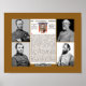 The Gettysburg Address flanked by Generals Sherman, Lee, Grant, and Jackson with Lincoln in the centre. The copy of the Address is a reproduction of the flyer sent out right after the speech the document is held in the Library of Congress.