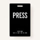 Simple Black and White Press All Access Pass Event ID Badge. For journalists and other media personnel. Editable template. Check the rest of the collection for other design variations.