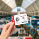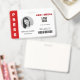 Press employee ID, logo and barcode red photo template badge. Personalise this journalist photo ID card badge with your name, ID, title, company logo and barcode. Add additional information on the back.