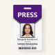 Customise the job title, your name and company name to your requirements. Easily upload your own photo and Bar Code. Custom press badge with photo ID and QR code. Reverse has 'If found return to". Press Pass Photo and Bar Code Purple ID Badge. This template photo and Bar Code are for demonstration purposes only.