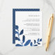 Designed to coordinate with our Pressed Botanical wedding collection in Indigo, this chic cobalt blue and white guest information card features sprigs of vibrant blue watercolor foliage, framing your key wedding details, like hotel accommodations, welcome reception information, website and more. Add your custom text using the fields provided and use the Customise function to adjust fonts, sizes and spacing.