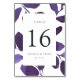 Chic botanical table number cards feature a border of vibrant plum purple watercolor foliage, framing your table number. Personalise with your names and wedding date, or name each table for an extra personal touch. Design repeats on reverse side. Coordinates with our Pressed Botanical wedding invitation suite in Violet.