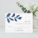 Designed to coordinate with our Pressed Botanical wedding collection, this chic cobalt blue and white RSVP card features a single spring of vibrant blue watercolor botanical foliage, topping your desired response date and custom accept and decline wording.