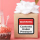 Warning - Contents Under Pressure - red, white and black warning sign style sticker.