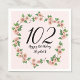 This pretty floral 102nd birthday napkin is perfect for a nice party and will set a fun and celebratory tone. This design features pink blossoms on stems, and is a nice feminine choice for a special event to celebrate a milestone birthday. Customize for your own birthday year, and search for "102" in my shop to see coordinating designs.