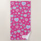 Pretty 3D Sparkly Crystal Gemstone Hearts on Pink Beach Towel