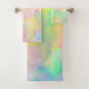 Add a splash of colour to your bathroom decor with this multi pastel abstract bath towel set. Matching shower curtain, bath mat, and toothbrush set are also available.