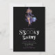 This invitation seamlessly blends sophistication with the supernatural. Against the dramatic black backdrop and alternating lines of stark white and light purple text, the words "spooky party" are presented in a horror movie cut-from-magazines letter font, adding an element of surprise and a touch of mystical spookiness to the overall design.