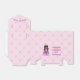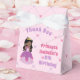 This adorable pink princess birthday party favour box features a pretty black girl wearing a beautiful pink ball gown. Personalise this cute children's party gift with your African American child's name and age in lovely purple between the fun heart pattern.