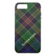 Stylish iPhone 7 Plus phone case done in the traditional Allison Clan's pretty colourful Scottish tartan plaid, laid on the diagonal. White text running diagonal, near the bottom, is ready to personalise. Stylish and great way to protect your smart phone, and makes a great gift idea.