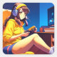Pretty anime girl wearing headphones in yellow.