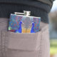 The flask itself is fine. It’s a cheap flask, obviously bought in bulk, however am prepared to overlook that. Given that it is a personalized item, I would have liked to have seen gift boxing instead of the generic packaging. Terrible printing, and/or quality. It’s a cheap, tacky vinyl. It is not cut straight and is also applied in a way that it is overhanging the bottom, causing the glue to catch on items and it will eventually roll and tear, damaging the wrap.