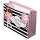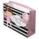 A super cute gift bag with bold and modern black & white stripes, a cool pink & black gingham pattern, a pretty ballerina and customisation on both sides.