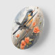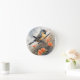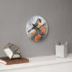 Pretty Bird on Tree Limb Orange Flowers Round Clock